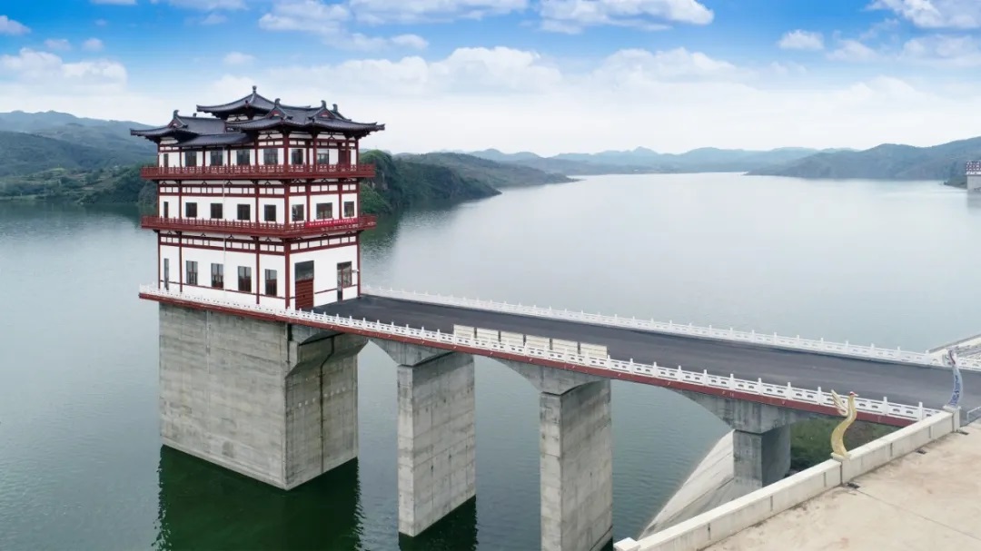 中水淮河公司在建設(shè)過程中,主要承擔(dān)溢洪道、泄洪洞、輸水洞、電站等建筑物的設(shè)計工作。科技創(chuàng)新成為工程高質(zhì)量建設(shè)的核心密碼,公司充分發(fā)揮技術(shù)領(lǐng)先優(yōu)勢,采用常規(guī)混凝土結(jié)合高性能抗沖耐磨混凝土解決泄洪洞高達27m/s的高速水流沖刷問題;利用三維有限元模型對隧洞結(jié)構(gòu)進行分析優(yōu)化;采用內(nèi)降外保的技術(shù)策略確保建筑物溫控防裂效果;針對當(dāng)?shù)氐牡匦蔚孛矖l件,對工程溢洪道、泄洪洞等泄水建筑物進行水工模型試驗論證及多方案比選;采用高次團粒生態(tài)防護措施進行高邊坡坡面防護,將工程主體與周圍自然環(huán)境有機融合;通過綜合運用各種先進技術(shù),為工程的安全運行奠定堅實的基礎(chǔ)。此外,庫區(qū)內(nèi)將漢唐文化元素與工程建設(shè)巧妙融合,雄偉的大壩與紅墻黛瓦、斗拱飛檐相互映襯,溢洪道、泄洪洞、進水塔等仿唐建筑獨具韻味,為庫區(qū)增添了深厚的人文氣息。